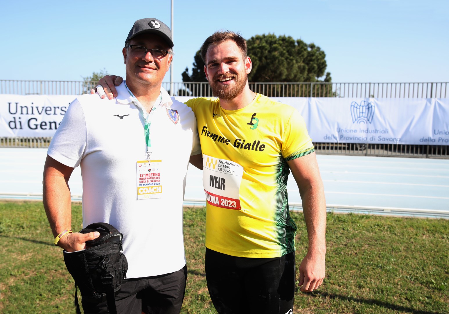 Sei settimane al Meeting internazionale Città di Savona, sei settimane all’inizio della stagione dell’atletica internazionale outdoor in Italia: mercoledì 21 maggio alla Fontanassa, nel centro sportivo intitolato a Giulio Ottolia, saranno ancora protagonisti i “colossi” del getto del peso maschile: Leonardo Fabbri e Zane Weir, due ragazzi che nelle ultime stagioni hanno scritto la storia italiana ed europea della specialità. Non esageriamo parlando di pagine di storia continentale con i primati personali rispettivamente a 22,98 e 22,44, infatti, Leo e Zane figurano al secondo e al sesto posto delle graduatorie europee di sempre. Entrambi allenati da Paolo Dal Soglio, entrambi reduci da un inverno di grandi misure: Fabbri 21,95 (migliore prestazione al mondo) e Weir 21,76 (terzo lancio al mondo 2025) con il toscano quarto al Mondiale di Nanchino.